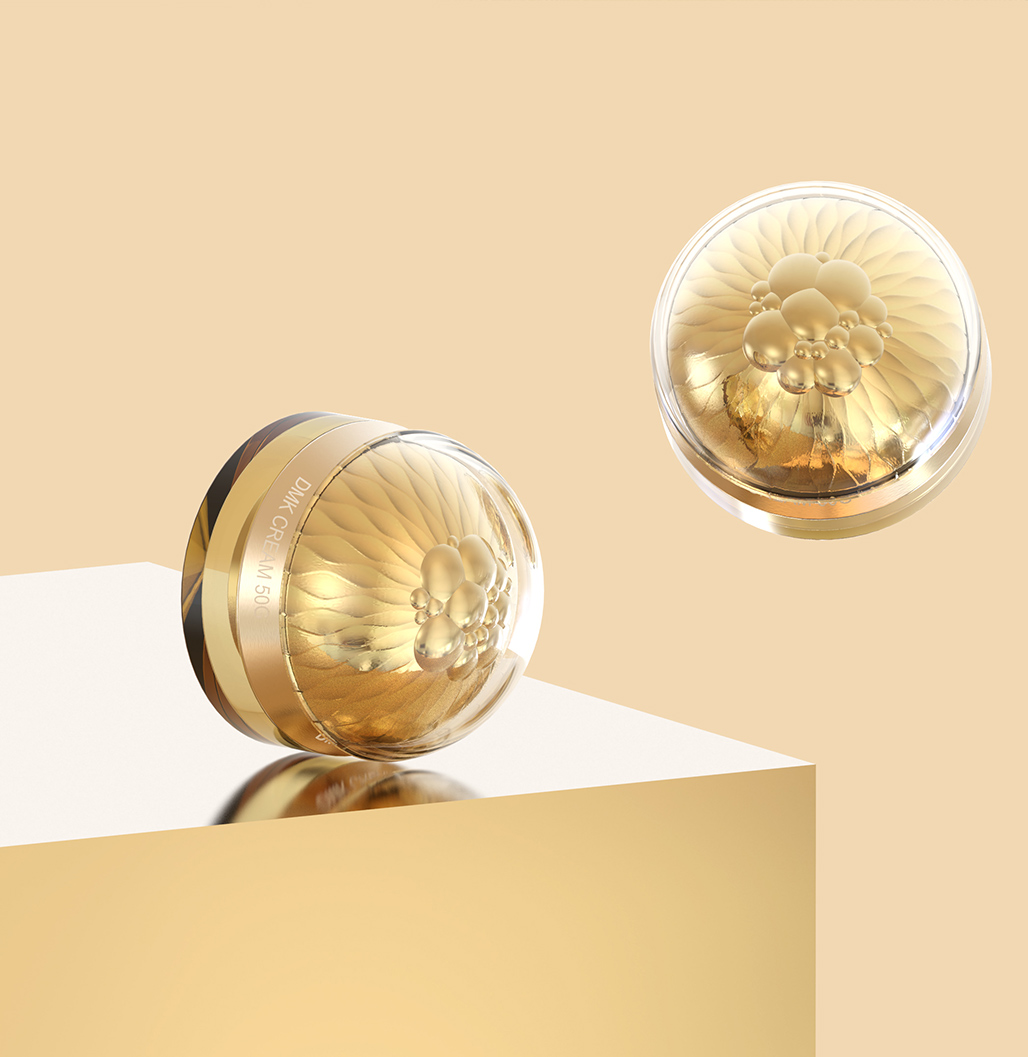 本化妆品包装的设计灵感源于自然界中优雅的水母与生命之基的细胞元素。水母以其独特的形态和轻盈的漂浮感,象征着纯净与和谐;而细胞作为生命的基本单位,蕴含着生命的活力与再生能力。我们将这两者结合,通过现代设计手法,打造出一款既具有艺术美感又富含科技感的化妆品包装。